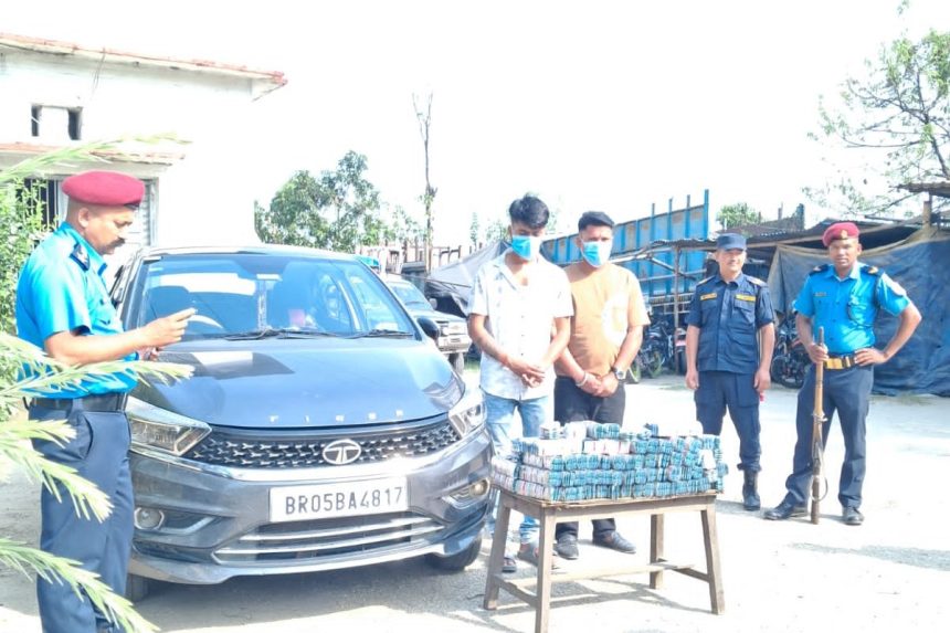 भारत, जिल्ला मोतिहारी, ग्राम अरेराज मलाही ११ मल्लाही बस्ने २३ वर्षीय चालक नितिशकुमार ठाकुर र गाडीमा सवार पर्साको वीरगंज महानगरपालिका वडा नं.१६ बस्ने बर्ष २६ को सिद्वान्त प्रसादलाई प्रहरीले नियन्त्रणमा लिएको हो।