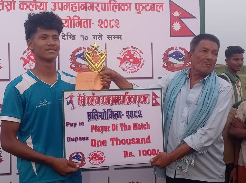 उनलाई कलैया उपमहानगरपालिका वडा नम्बर २२ का वडा अध्यक्ष शिवचन्द्र कामीले नगद रु एक हजार रुपैयाँ तथा ट्रफी प्रदान गरे ।