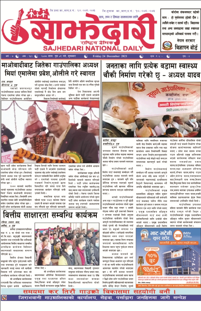 ई–पेपर २०८२ असार २८ गते । साझेदारी दैनिक साझेदारी दैनिक २०८२ असार २८, गते 240 पाठक संख्या शेयर शेयर Leave a review Leave a review Leave a Review Cancel replyYour email address will not be published. Required fields are marked * Please select a rating! Your Rating Rate… Perfect Good Average Not that Bad Very Poor Your Comment *नाम * Your Email * Your website Save my name, email, and website in this browser for the next time I comment. ताजा अपडेट २०८३ वैशाख ०४ गते । साझेदारी दैनिक ई–पेपर पाँच पटक भन्दाबढी ट्राफिक नियम उल्लंघन गर्नेको लाइसेन्स निलम्बन प्रक्रिया सुरु मधेश मुख्य समाचार समाचार बाराका दुई नगरपालिकामा नयाँ प्रमुख प्रशासकीय अधिकृत खटाइए मधेश मुख्य समाचार समाचार पर्सामा नागरिकतासँगै राष्ट्रिय परिचयपत्र मधेश मुख्य समाचार समाचार सुनचाँदीको मूल्यमा सामान्य वृद्धि समाचार राजश्व अनुसन्धान कार्यालय पथलैयामा आगलागी, प्रमुखको कार्यकक्ष ध्वस्त मधेश समाचार भाडा वृद्धि पछि सिमरा-काठमाडौं उडानमा यात्रु घटे मधेश मुख्य समाचार समाचार मुख्य समाचार बारामा साढे दुई महिनामा एक करोडभन्दा बढीको अवैध सामान बरामद मधेश मुख्य समाचार समाचार सांसद साहलाई जीतपुरसिमरा-१७ का वडाबासीद्वारा ध्यानाकर्षणपत्र बुझाइयो मधेश मुख्य समाचार समाचार प्रधानमन्त्री कपको आजको खेलमा मधेस प्रदेश विजयी खेलकुद मधेश समाचार होटेल करण राज प्यालेसमा आधुनिक सुविधासहित स्विमिङ पुल उद्घाटन मधेश मुख्य समाचार समाचार रिलायन्स सुगर एण्ड केमिकल इन्डस्ट्रिजद्वारा उखु क्रसिङ सिजन समापन मधेश मुख्य समाचार समाचार प्रदेश समाचार स्थानीय तहसँग मागियो विद्यालय समायोजनको विवरण प्रदेश समाचार समाचार सिरहाको सलहेश फूलबारीमा भक्तजनको घुइँचो मधेश समाचार प्रसौनीमा ३ करोड भन्दा बढीको लागतमा विद्यालय–पुस्तकालय भवन निर्माण हुदै मधेश समाचार अवैध बिटौरी कर असुलीविरुद्ध प्रसौनीमा प्रदर्शन, छानबिनको माग मधेश मुख्य समाचार समाचार प्रधानमन्त्री कप क्रिकेटः मधेसलाई पराजित गर्दै एपिएफ विजयी खेलकुद मधेश समाचार