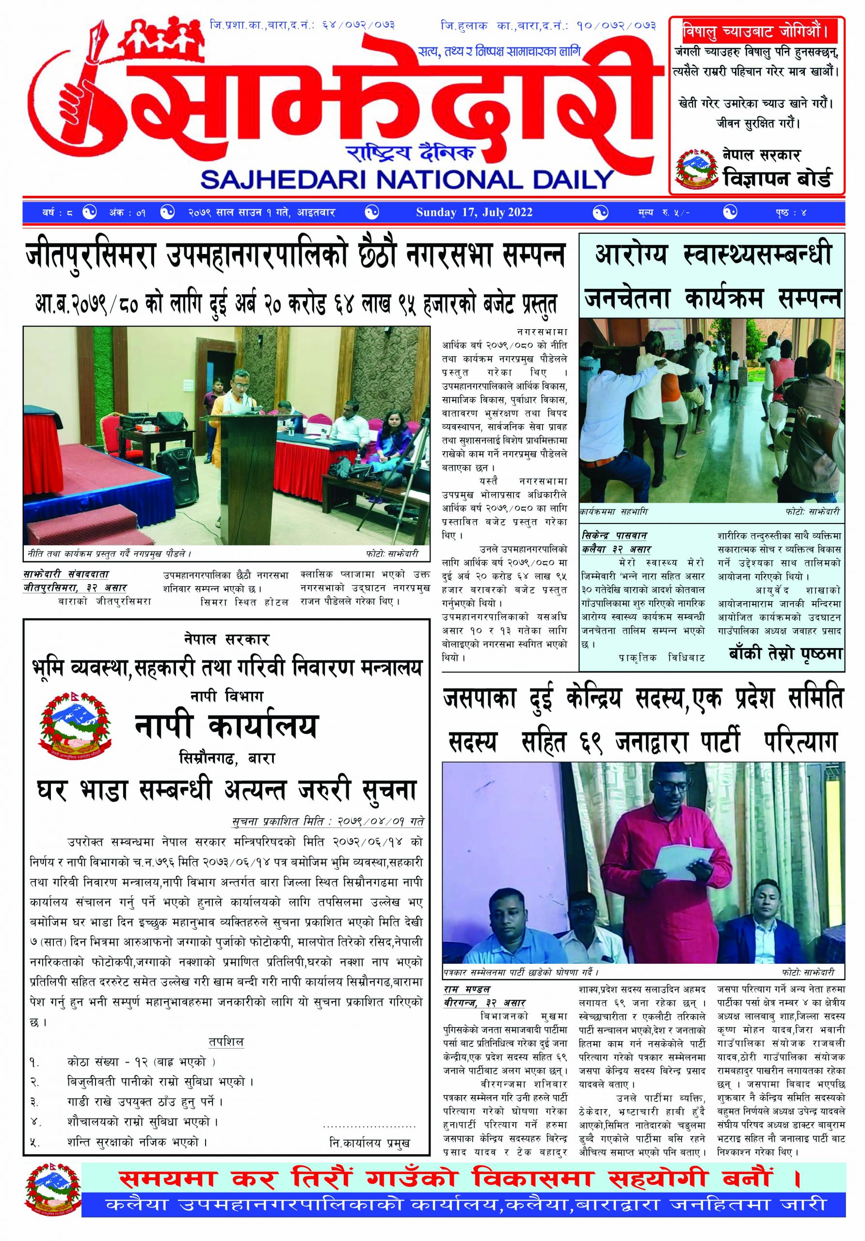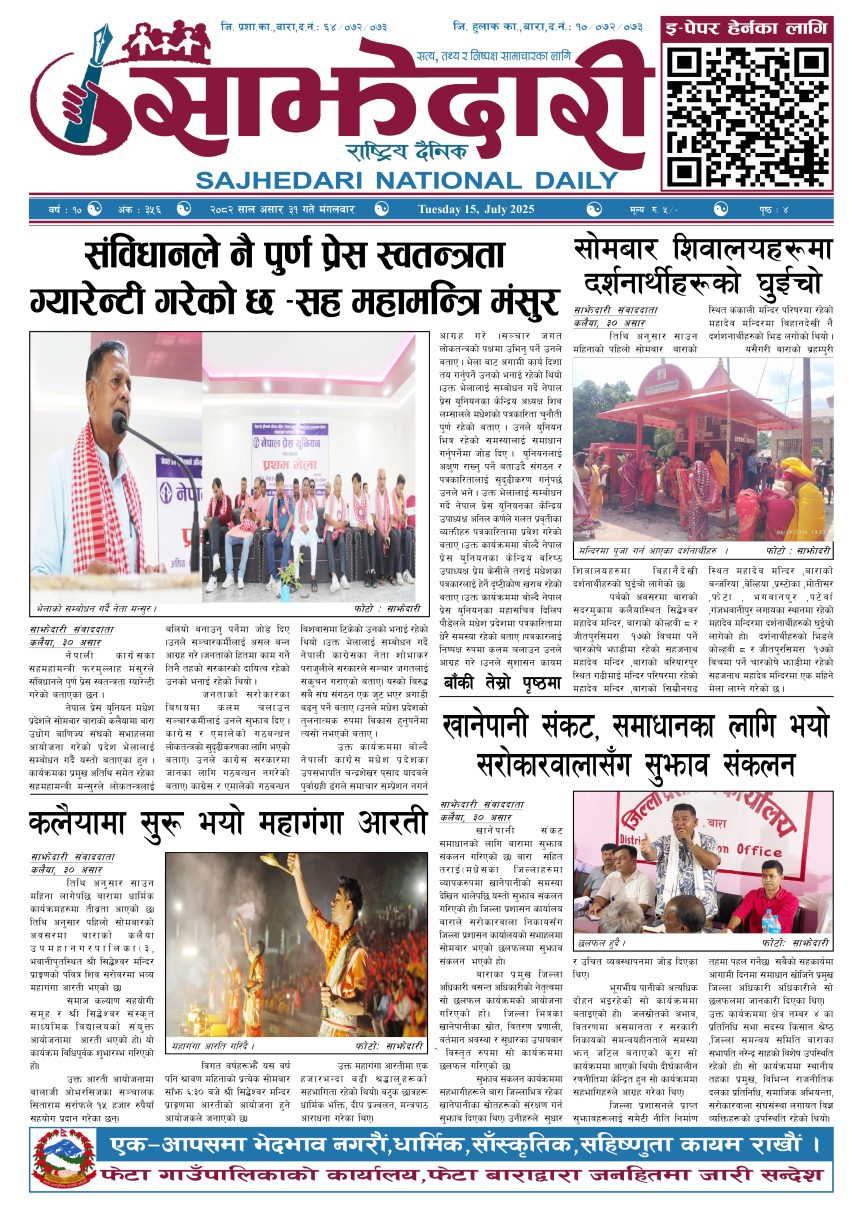 ई–पेपर २०८२ असार ३१ गते । साझेदारी दैनिक साझेदारी दैनिक २०८२ असार ३१, गते 263 पाठक संख्या शेयर शेयर Leave a review Leave a review Leave a Review Cancel replyYour email address will not be published. Required fields are marked * Please select a rating! Your Rating Rate… Perfect Good Average Not that Bad Very Poor Your Comment *नाम * Your Email * Your website Save my name, email, and website in this browser for the next time I comment. ताजा अपडेट रौतहटमा गुणस्तरहीन निर्माण कार्य भएको भन्दै स्थानीयद्वारा विरोध ,काका ठेकेदार भतिजा ईन्जिनियर मधेश मुख्य समाचार समाचार गण्डक नहर किनारका अतिक्रमित संरचना हटाउन थालियो मधेश समाचार कलैया : बसपार्कबाटै सवारी चलाउने निर्णय अझै कार्यान्वयन भएन मधेश मुख्य समाचार समाचार सुनचाँदीको मुल्य आज बढ्यो समाचार मनोहरा सुकुमवासी बस्तीमा घरटहरा भत्काउन सुरु समाचार खुला नाकाबाट सोझै वीरगन्ज भित्रिन्छ भारतीय तरकारी मधेश समाचार मधुवनमा काठसहित एक जना पक्राउ मधेश समाचार मुख्य समाचार सेज क्षेत्रको अतिक्रमण हटाउने प्रक्रिया तीव्र हुँदै,५ सय बिघा जमिन फिर्ता लिन सरकारको दबाब मधेश मुख्य समाचार समाचार कलवारको नेतृत्वमा शान्ति युवा मञ्चको नयाँ समिति गठन मधेश समाचार अत्याधिक गर्मीलाई मध्यनजर गर्दै कलैयामा निःशुल्क पानी र शरबत वितरण मधेश समाचार कलैयामा अब सबै रुटका सवारी बसपार्कबाट मात्र सञ्चालन हुने मधेश मुख्य समाचार समाचार बिजुली, पानी र विवाह रकम भुक्तानीको माग गर्दै मौलापुर नगरपालिकाविरुद्ध आन्दोलन घोषणा मधेश समाचार प्रदेश समाचार थापाथलीको सुकुमबासी बस्ती खाली गरियो बागमती समाचार वीरगञ्जबाट पेट्रोलियम आयात, साठी अर्ब अठतीस करोड राजस्व सङ्कलन मधेश समाचार पथलैयामा ओभरलोड सवारीमाथि एक्सनः दुई दिनमै ६ गाडी कारवाहीमा मधेश मुख्य समाचार समाचार सुकुम्वासी मोर्चाका कार्यवाहक अध्यक्ष परियार पक्राउ बागमती समाचार भूमिहीनलाई ३० दिनभित्र विवरण पेश गर्न वीरगञ्ज महानगरको सूचना मधेश समाचार