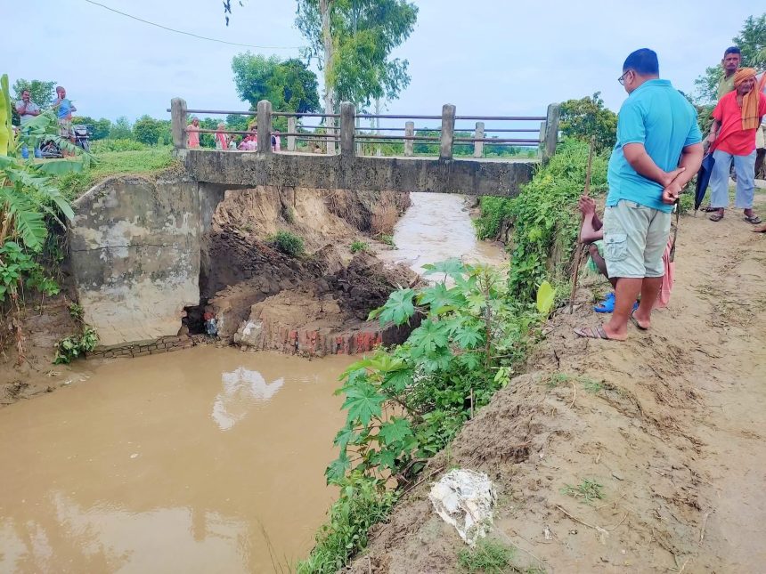 सिरहा : यहाँको मिर्चैया नगरपालिका–२ मल्हनियाँ पिराडी र वडा नं १२ को सिक्रौन गाउँ जोड्ने मैनावती खोलाको पुल आज बाढीले भासिएपछि आवतजावत पूर्ण रूपमा अवरुद्ध भएको छ ।