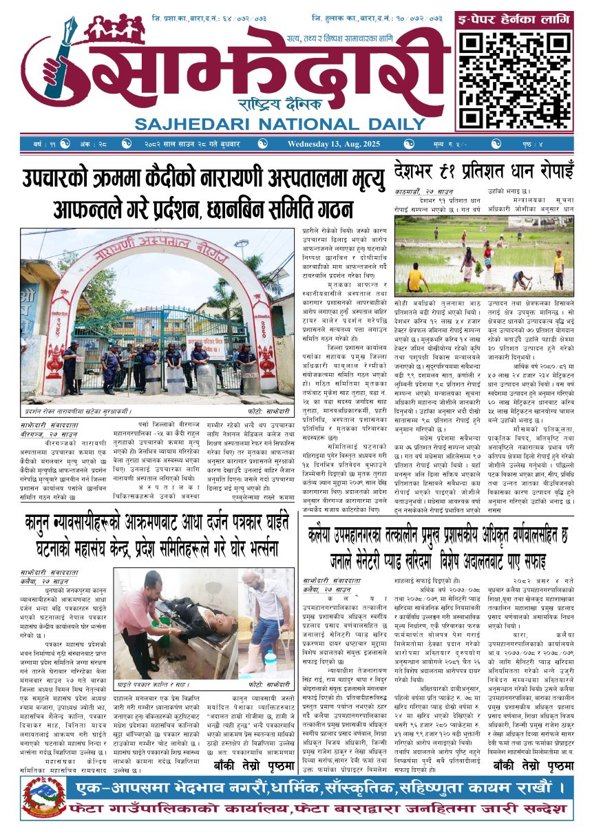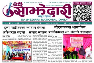 ई–पेपर २०८२ साउन २८ गते । साझेदारी दैनिक साझेदारी दैनिक २०८२ श्रावण २८, गते 221 पाठक संख्या शेयर शेयर Leave a review Leave a review Leave a Review Cancel replyYour email address will not be published. Required fields are marked * Please select a rating! Your Rating Rate… Perfect Good Average Not that Bad Very Poor Your Comment *नाम * Your Email * Your website Save my name, email, and website in this browser for the next time I comment. ताजा अपडेट दुर्घटना न्यूनीकरणलाई केन्द्रमा राखेर काम गर्न डीआईजी थपलियाको निर्देशन मधेश मुख्य समाचार समाचार कलैयामा घरको ताला तोडेर करिब ५० लाख बराबरको चोरी मधेश मुख्य समाचार समाचार प्रधानमन्त्री कप क्रिकेटको उपाधि त्रिभुवन आर्मी क्लबलाई खेलकुद मधेश मुख्य समाचार समाचार लागुऔषधसहित विभिन्न स्थानबाट २४ जना पक्राउ प्रदेश समाचार समाचार सुनचाँदीको मूल्य घट्यो समाचार भन्सार छली प्रकरणः तीन जनाविरुद्ध अदालतमा मुद्दा, मुख्य अभियुक्तबाट २ करोडभन्दा बढी बिगो दाबी मधेश मुख्य समाचार समाचार जीतपुरको गौशाला जग्गा अतिक्रमण घरटहरा हटाइयो मधेश मुख्य समाचार समाचार मुख्य समाचार बारामा भूतपूर्व सैनिक पुनर्मिलन कार्यक्रम सम्पन्न मधेश समाचार पाँच पटक भन्दाबढी ट्राफिक नियम उल्लंघन गर्नेको लाइसेन्स निलम्बन प्रक्रिया सुरु मधेश मुख्य समाचार समाचार बाराका दुई नगरपालिकामा नयाँ प्रमुख प्रशासकीय अधिकृत खटाइए मधेश मुख्य समाचार समाचार पर्सामा नागरिकतासँगै राष्ट्रिय परिचयपत्र मधेश मुख्य समाचार समाचार राजश्व अनुसन्धान कार्यालय पथलैयामा आगलागी, प्रमुखको कार्यकक्ष ध्वस्त मधेश समाचार प्रदेश समाचार भाडा वृद्धि पछि सिमरा-काठमाडौं उडानमा यात्रु घटे मधेश मुख्य समाचार समाचार बारामा साढे दुई महिनामा एक करोडभन्दा बढीको अवैध सामान बरामद मधेश मुख्य समाचार समाचार सांसद साहलाई जीतपुरसिमरा-१७ का वडाबासीद्वारा ध्यानाकर्षणपत्र बुझाइयो मधेश मुख्य समाचार समाचार प्रधानमन्त्री कपको आजको खेलमा मधेस प्रदेश विजयी खेलकुद मधेश समाचार स्थानीय तहसँग मागियो विद्यालय समायोजनको विवरण प्रदेश समाचार समाचार