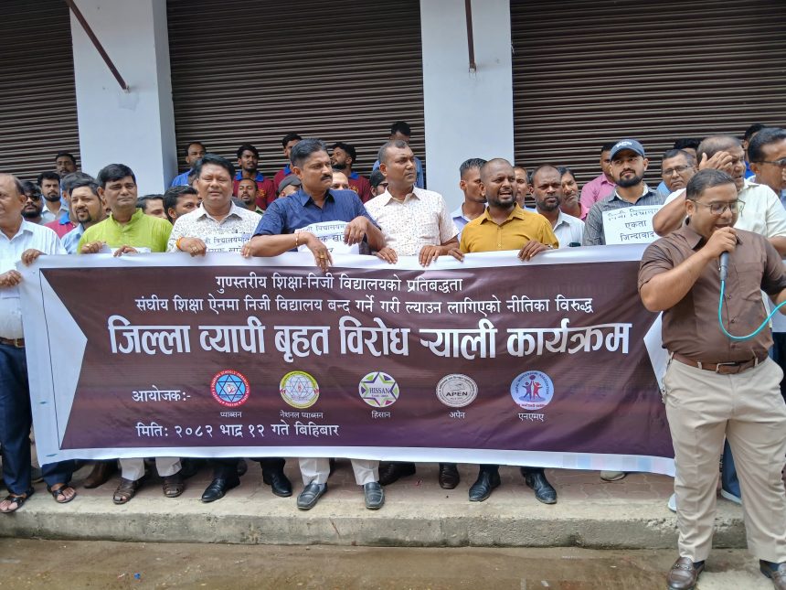 वीरगञ्ज । निजी विद्यालय सञ्चालकहरूले बिहीबार वीरगञ्जमा बृहत विरोध -याली गरेका छन्।