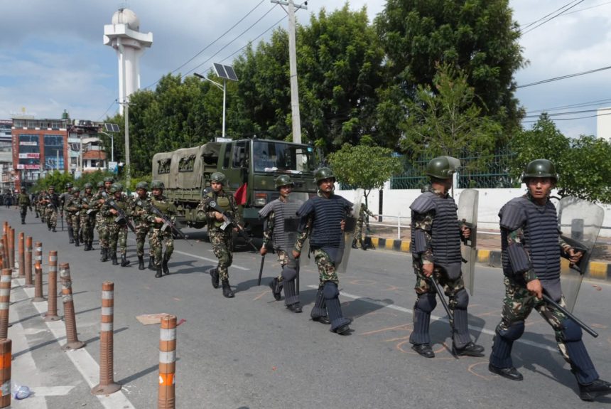 काठमाडौँ । काठमाडौँको नयाँ बानेश्वर क्षेत्रमा ‘जेनजी’को प्रदर्शन अराजक बनेपछि सुरक्षाका लागि नेपाली सेना खटाइएको छ ।