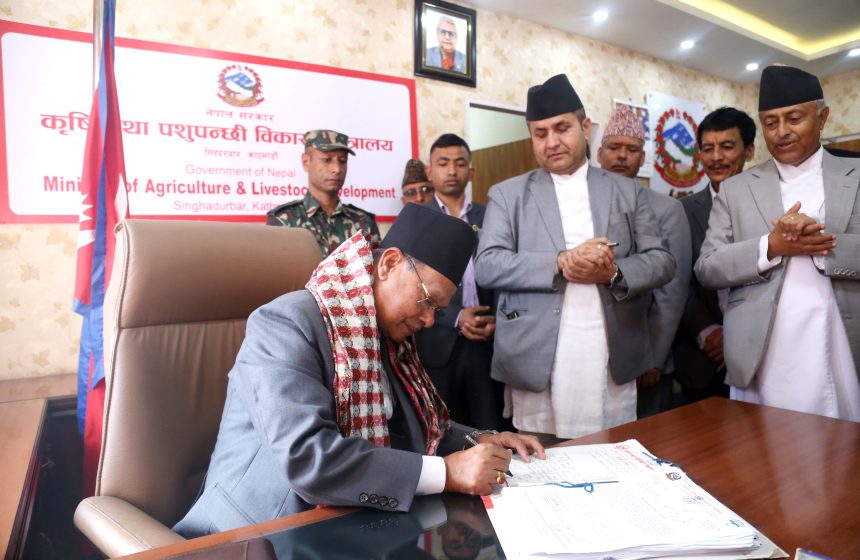 काठमाडौँ : नवनियुक्त कृषि तथा पशुपन्छी विकासमन्त्री डा मदनप्रसाद परियारले पदभार ग्रहण गर्नुभएको छ ।