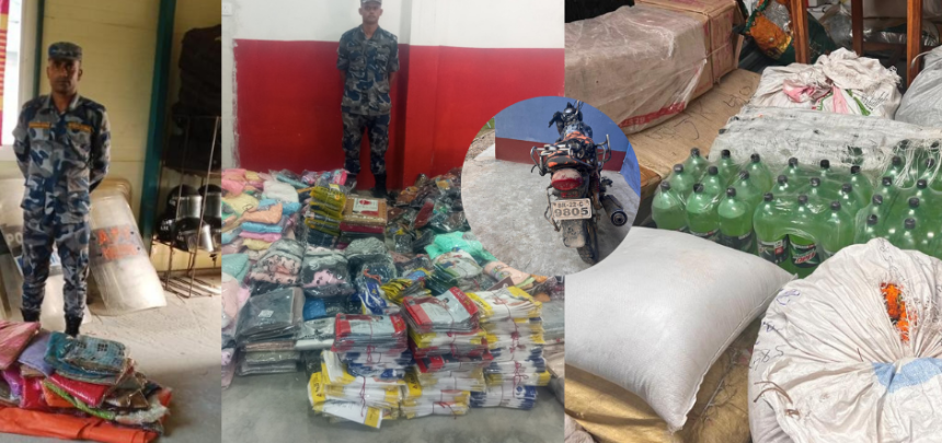 त्यसैगरी कलैया ७ स्थित दुर्गा उच्च मा.वि.आसपासको क्षेत्रवाट अवैध रूपमा भारतवाट ल्याईएका किराना सामाग्रिहरू तथा मोटरसाइकल सशस्त्र प्रहरीले नियन्त्रणमा लिएको छ। दुई लाख ११ हजार बराबरको सामान गणवाट खटिएको टोलीले बरामद गरेको हो।