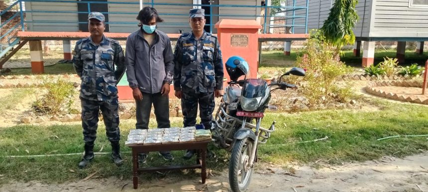 सशस्त्र प्रहरी निरीक्षक सन्दिप के.सी.को टोलीले भारतबाट नेपालतर्फ आउदै गरेको नेपाली नम्बर प्लेटको मोटरसाइकललाई शंका लागि एक जनालाई जाँच गरेको हो।