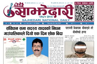 ई–पेपर २०८२ मंसिर ११ गते । साझेदारी दैनिक साझेदारी दैनिक २०८२ मंसिर ११, गते 214 पाठक संख्या शेयर शेयर Leave a review Leave a review Leave a Review Cancel replyYour email address will not be published. Required fields are marked * Please select a rating! Your Rating Rate… Perfect Good Average Not that Bad Very Poor Your Comment *नाम * Your Email * Your website Save my name, email, and website in this browser for the next time I comment. ताजा अपडेट २०८३ वैशाख ०५ गते । साझेदारी दैनिक ई–पेपर दुर्घटना न्यूनीकरणलाई केन्द्रमा राखेर काम गर्न डीआईजी थपलियाको निर्देशन मधेश मुख्य समाचार समाचार कलैयामा घरको ताला तोडेर करिब ५० लाख बराबरको चोरी मधेश मुख्य समाचार समाचार प्रधानमन्त्री कप क्रिकेटको उपाधि त्रिभुवन आर्मी क्लबलाई खेलकुद मधेश मुख्य समाचार समाचार लागुऔषधसहित विभिन्न स्थानबाट २४ जना पक्राउ प्रदेश समाचार समाचार सुनचाँदीको मूल्य घट्यो समाचार भन्सार छली प्रकरणः तीन जनाविरुद्ध अदालतमा मुद्दा, मुख्य अभियुक्तबाट २ करोडभन्दा बढी बिगो दाबी मधेश मुख्य समाचार समाचार मुख्य समाचार जीतपुरको गौशाला जग्गा अतिक्रमण घरटहरा हटाइयो मधेश मुख्य समाचार समाचार बारामा भूतपूर्व सैनिक पुनर्मिलन कार्यक्रम सम्पन्न मधेश समाचार पाँच पटक भन्दाबढी ट्राफिक नियम उल्लंघन गर्नेको लाइसेन्स निलम्बन प्रक्रिया सुरु मधेश मुख्य समाचार समाचार बाराका दुई नगरपालिकामा नयाँ प्रमुख प्रशासकीय अधिकृत खटाइए मधेश मुख्य समाचार समाचार पर्सामा नागरिकतासँगै राष्ट्रिय परिचयपत्र मधेश मुख्य समाचार समाचार प्रदेश समाचार राजश्व अनुसन्धान कार्यालय पथलैयामा आगलागी, प्रमुखको कार्यकक्ष ध्वस्त मधेश समाचार भाडा वृद्धि पछि सिमरा-काठमाडौं उडानमा यात्रु घटे मधेश मुख्य समाचार समाचार बारामा साढे दुई महिनामा एक करोडभन्दा बढीको अवैध सामान बरामद मधेश मुख्य समाचार समाचार सांसद साहलाई जीतपुरसिमरा-१७ का वडाबासीद्वारा ध्यानाकर्षणपत्र बुझाइयो मधेश मुख्य समाचार समाचार प्रधानमन्त्री कपको आजको खेलमा मधेस प्रदेश विजयी खेलकुद मधेश समाचार