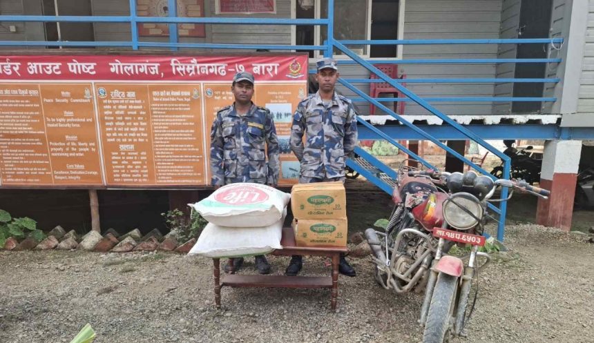 बाराको सिम्रौनगढ नगरपालिका – ९ पिठुवाघाट स्थित सीमा ईलाकामा वि.ओ.पि.गोलागंजबाट खटिएको सशस्त्र प्रहरी नायब निरीक्षक तिलकबहादुर गुर्माछानको टोलिले भारतबाट अबैध रुपमा भन्सार छली नेपाल तर्फ ल्याउदै गरेको अन्दाजी ६९ हजार ५० रुपैयाँ बराबरको चप्पल र मोटरसाइकलको एक लाख गरी जम्मा मुल्य १ लाख ६९ हजार ५० रुपैयाँ बराबरको चप्पल र मोटरसाइकल बरामद गरेको सशस्त्र प्रहरीले जनाएको छ।