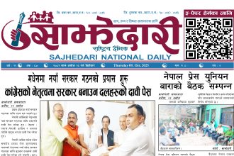 ई–पेपर २०८२ मंसिर २४ गते । साझेदारी दैनिक साझेदारी दैनिक २०८२ मंसिर २४, गते 222 पाठक संख्या शेयर शेयर Leave a review Leave a review Leave a Review Cancel replyYour email address will not be published. Required fields are marked * Please select a rating! Your Rating Rate… Perfect Good Average Not that Bad Very Poor Your Comment *नाम * Your Email * Your website Save my name, email, and website in this browser for the next time I comment. ताजा अपडेट दुर्घटना न्यूनीकरणलाई केन्द्रमा राखेर काम गर्न डीआईजी थपलियाको निर्देशन मधेश मुख्य समाचार समाचार कलैयामा घरको ताला तोडेर करिब ५० लाख बराबरको चोरी मधेश मुख्य समाचार समाचार प्रधानमन्त्री कप क्रिकेटको उपाधि त्रिभुवन आर्मी क्लबलाई खेलकुद मधेश मुख्य समाचार समाचार लागुऔषधसहित विभिन्न स्थानबाट २४ जना पक्राउ प्रदेश समाचार समाचार सुनचाँदीको मूल्य घट्यो समाचार भन्सार छली प्रकरणः तीन जनाविरुद्ध अदालतमा मुद्दा, मुख्य अभियुक्तबाट २ करोडभन्दा बढी बिगो दाबी मधेश मुख्य समाचार समाचार जीतपुरको गौशाला जग्गा अतिक्रमण घरटहरा हटाइयो मधेश मुख्य समाचार समाचार मुख्य समाचार बारामा भूतपूर्व सैनिक पुनर्मिलन कार्यक्रम सम्पन्न मधेश समाचार पाँच पटक भन्दाबढी ट्राफिक नियम उल्लंघन गर्नेको लाइसेन्स निलम्बन प्रक्रिया सुरु मधेश मुख्य समाचार समाचार बाराका दुई नगरपालिकामा नयाँ प्रमुख प्रशासकीय अधिकृत खटाइए मधेश मुख्य समाचार समाचार पर्सामा नागरिकतासँगै राष्ट्रिय परिचयपत्र मधेश मुख्य समाचार समाचार राजश्व अनुसन्धान कार्यालय पथलैयामा आगलागी, प्रमुखको कार्यकक्ष ध्वस्त मधेश समाचार प्रदेश समाचार भाडा वृद्धि पछि सिमरा-काठमाडौं उडानमा यात्रु घटे मधेश मुख्य समाचार समाचार बारामा साढे दुई महिनामा एक करोडभन्दा बढीको अवैध सामान बरामद मधेश मुख्य समाचार समाचार सांसद साहलाई जीतपुरसिमरा-१७ का वडाबासीद्वारा ध्यानाकर्षणपत्र बुझाइयो मधेश मुख्य समाचार समाचार प्रधानमन्त्री कपको आजको खेलमा मधेस प्रदेश विजयी खेलकुद मधेश समाचार स्थानीय तहसँग मागियो विद्यालय समायोजनको विवरण प्रदेश समाचार समाचार