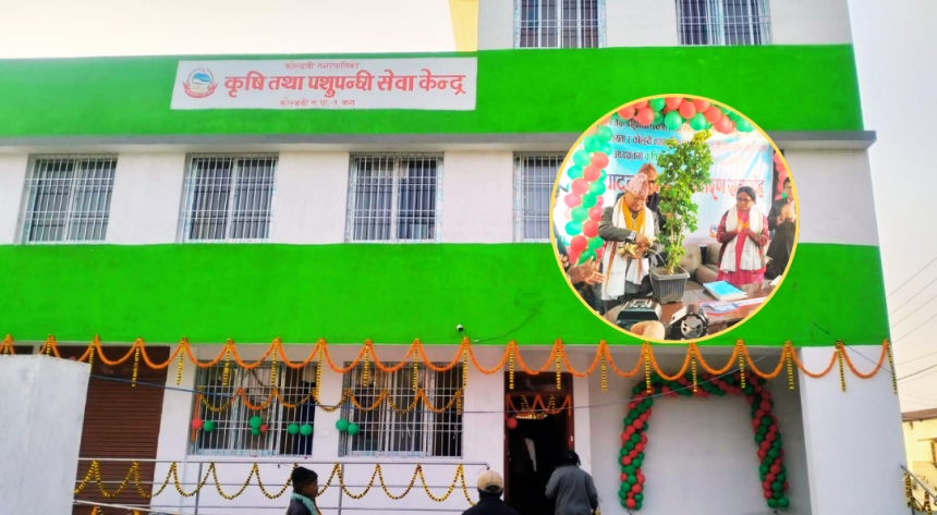 कोल्हवी : धिरेन्द्र पनुहर/ बाराको कोल्हवी नगरपालिकामा निर्माण सम्पन्न कृषि तथा पशुपन्छी सेवा केन्द्रको नवनिर्मित भवन शनिवार एक कार्यक्रमवीच उद्घाटन तथा हस्तान्तरण गरिएको छ।
