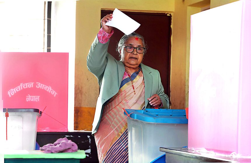 काठमाडौँ : प्रधानमन्त्री सुशीला कार्कीले काठमाडौँ क्षेत्र नं ५ स्थित धापासी निमावली फैमालचुली मतदान केन्द्रबाट मतदान गर्नुभएको हो ।