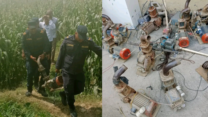 बारा । बारा जिल्लाका विभिन्न स्थानमा सिँचाइ प्रयोजनका लागि अनधिकृत रूपमा विद्युत चोरी गरी सञ्चालनमा ल्याइएका १८ थान विद्युत मोटर बरामद गरिएको छ।