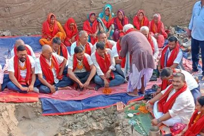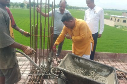 माधवनारायणको पहिलो तल्लाको छत ढलान शुरु,मेयर यादवले गरे पुजा